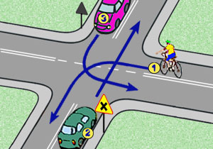Na tym skrzyżowaniu rowerzysta: