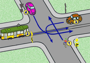 Motorowerzysta na tym skrzyżowaniu: