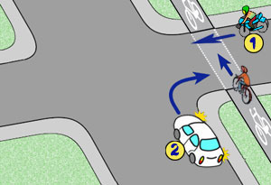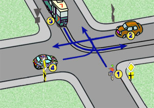 Rowerzysta na tym skrzyżowaniu:
