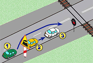 Widząc dwa na przemian migające czerwone sygnały przed przejazdem kolejowym, kierujący pojazdem: