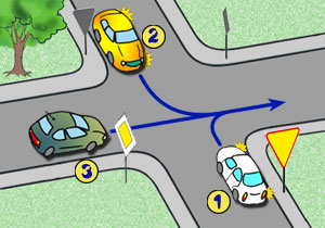 W tej sytuacji, kierujący pojazdem 1 pojedzie: