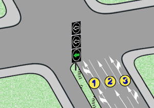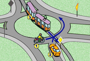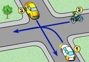 Na tym skrzyżowaniu, kierujacy pojazdem 1: