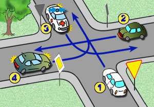 Na tym skrzyżowaniu, kierujący pojazdem 1: