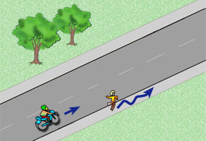 Prowadząc motorower po chodniku: