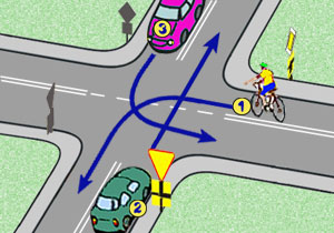 ustępuje pierwszeństwa pojazdowi nr 3,