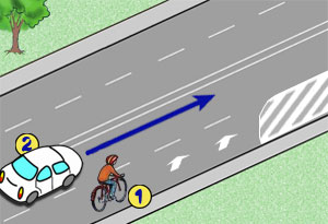 rowerzysta powinien zmienić pas ruchu i nie wjeżdżać na powierzchnię liniowaną,