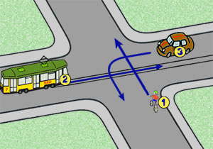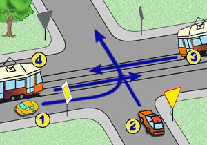 Na tym skrzyżowaniu kierujący pojazdem nr 1 ustępuje pierwszeństwa przejazdu: