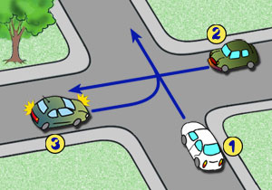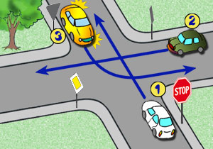 W sytuacji na przedstawionym rysunku, pojazd nr 1: