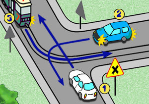 14. Na tym skrzyżowaniu: kierujący pojazdem nr 1: