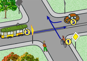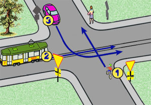 Rowerzysta z nr 3 na tym skrzyżowaniu: