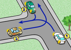 Na tym skrzyżowaniu kierujący pojazdem nr 1:
