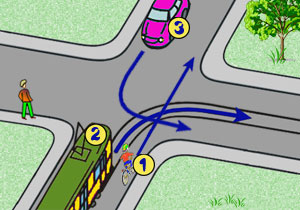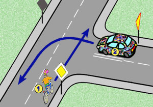 Na tym skrzyżowaniu kierujący rowerem nr 1: