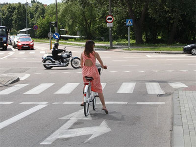 Przejazd dla rowerzystów - powierzchnia jezdni lub torowiska przeznaczona do przejeżdżania przez rowerzystów, oznaczona odpowiednimi znakami drogowymi D-6a i przeznaczona do przejeżdżania przez rowerzystów, oznaczona odpowiednimi znakami drogowymi P-11. Pamiętaj, że pierwszeństwo w miejscu gdzie droga dla rowerów przecina jezdnię, ma rowerzysta.