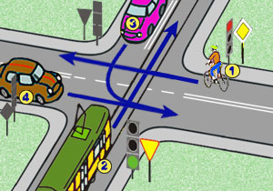 rowerzysta pojedzie równocześnie z pojazdem nr 4,