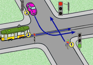 pojazd z nr 3 musi ustąpić wszystkim pierwszeństwa przejazdu.