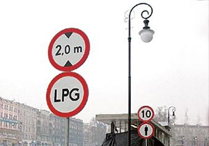 poniżej symbolizuje zakaz wjazdu samochodów z napędem gazowym na ten parking.