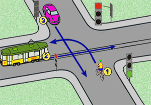 W sytuacji przedstawionej na rysunku kierujący rowerem:
