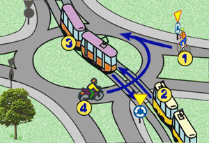 Kierujący motorowerem z nr 4 na takim skrzyżowaniu: