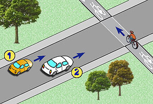Zabrania się wyprzedzania kierującego rowerem jadącego po jezdni: