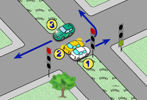 Kierujący pojazdem nr 1 na takim skrzyżowaniu: