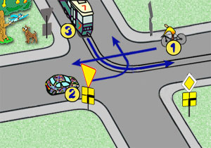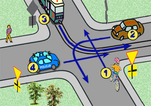 Jaka jest kolejność przejazdu na przedstawionym skrzyżowaniu?
