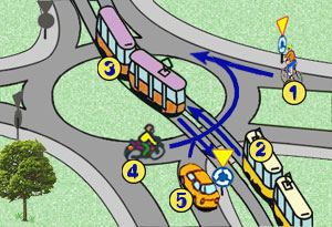Podaj prawidłową kolejność przejazdu: