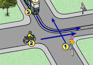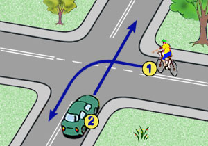 Kierujący rowerem, który skręca w drogę poprzeczną, jest obowiązany ustąpić pierwszeństwa innemu rowerzyście, który jedzie na wprost: