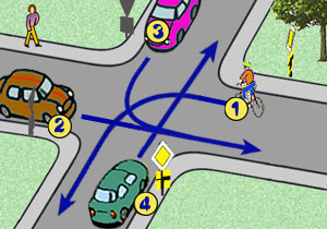 Kolejność przejazdu na tym skrzyżowaniu to: