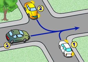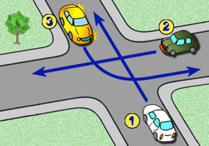 W sytuacji na przedstawionym rysunku, pojazd nr 1: