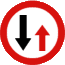 Który z poniższych znaków oznacza odcinek jezdni o ruchu dwukierunkowym: