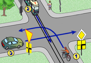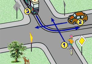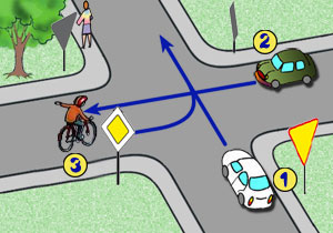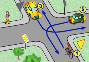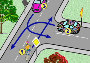Rowerzysta z nr 3 na tym skrzyżowaniu: