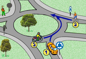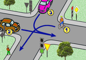 W przedstawionej sytuacji kierujący rowerem nr 1: