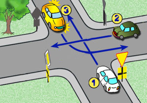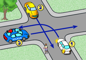 W przedstawionej sytuacji kierujący pojazdem nr 1: