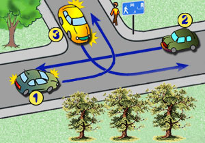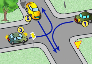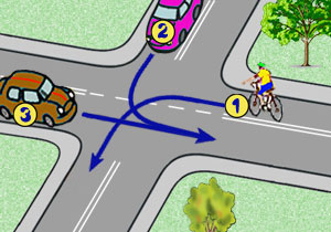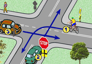 Kierujący pojazdem nr 1 na takim skrzyżowaniu: