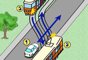 W tej sytuacji kierujący pojazdem nr 1 ustępuje pierwszeństwa: