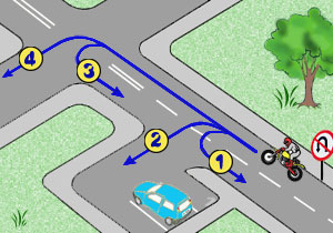 W tej sytuacji kierujący motorowerem może pojechać torem oznaczonym nr: