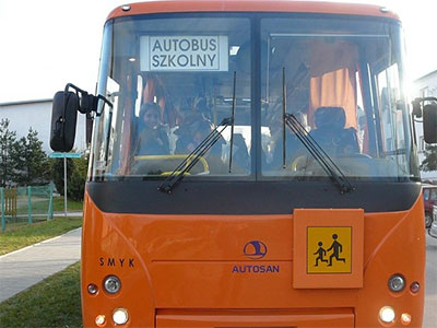 Autobus szkolny - autobus przeznaczony do przewozu dzieci do szkoły, barwy pomarańczowej, oznaczony z przodu i z tyłu prostokątnymi tablicami barwy białej, z napisem barwy czarnej: autobus szkolny