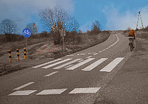 - jazdy po jezdni, jeżeli obok jest wyznaczona ścieżka rowerowa, bądź znajduje się dogodne do jazdy pobocze,
