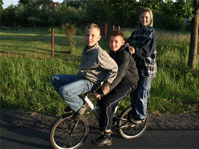 wykroczenie jak kierowca prowadzący samochód i rozmawiający przez komórkę. Za to wykroczenie grozi mandat! Przewożenie osób rowerem: ![]() |