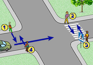 c) przechodzenia przez jezdnię w sąsiedztwie skrzyżowania, jeżeli nie ma wyznaczonego przejścia dla pieszych.
