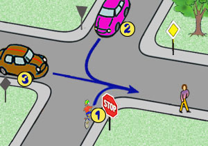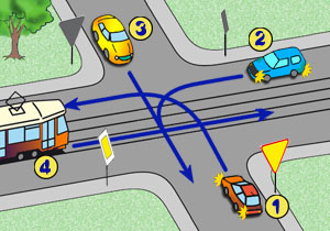 b) poczekać, aż wyprzedzą go stojące za nim pojazdy i wolno ruszyć do przodu,