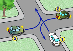 c) pojazd numer 3 musi ustąpić pierwszeństwa pojazdowi numer 2.