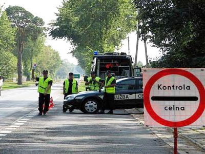 Znak oznacza obowiązek zatrzymania się. Zamiast napisu "Cło - Zoll" na znaku