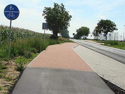 są kreską poziomą; tutaj piesi mają pierwszeństwo przed rowerzystami na ałej szerokości wyznaczonej drogi. |
