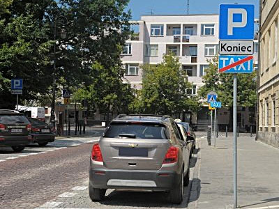 znak, a potem jego odwołanie - w przypadku postoju taksówek jest odwrotnie - czyli jadąc drogą najpierw zobaczysz omawiany znak, a dopiero potem D-19 - zobacz przykład poniżej.