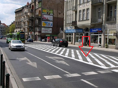 Czy w tej sytuacji, w miejscu oznaczonym strzałką, dozwolone jest parkowanie samochodów osobowych?