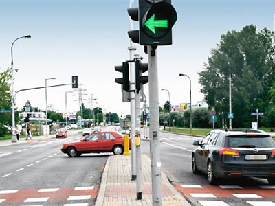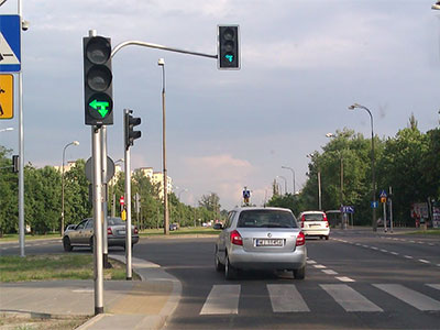 Światło zielone nadawane przez sygnalizator kierunkowy oznacza ponadto, że podczas jazdy we wskazanym kierunku nie występuje kolizja z innymi uczestnikami