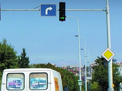 Sygnalizator kierunkowy który zezwala na skręt w lewo - (sygnalizator po prawej