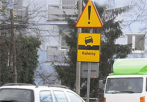 T-13 Tabliczka wskazująca odcinek drogi, na którym występują deformacje nawierzchni w postaci kolein