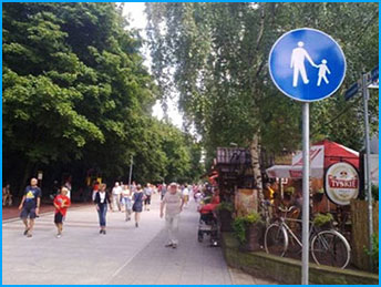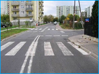 "strefa zamieszkania" - w takim miejscu piesi mogą poruszać się całą szerokością ulicy, i mają pierwszeństwo przed pojazdami.